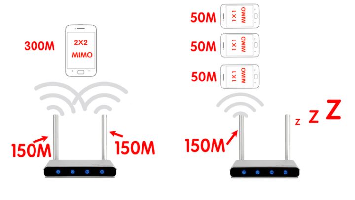也就是說如果你的路由器是2根天線的,就算你連接了10部1根天線的手機,也同樣只能用到路由器的一根天線。