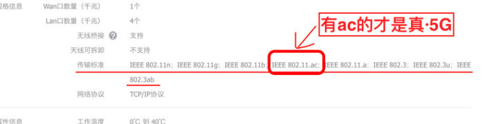 那么大一坨都不用看,都是老舊的標(biāo)準(zhǔn),速度慢。而802.11.ac是現(xiàn)在最強、最快的,有這個的才是真正的5g路由器,購買時認(rèn)準(zhǔn)802.11.ac就可以了。